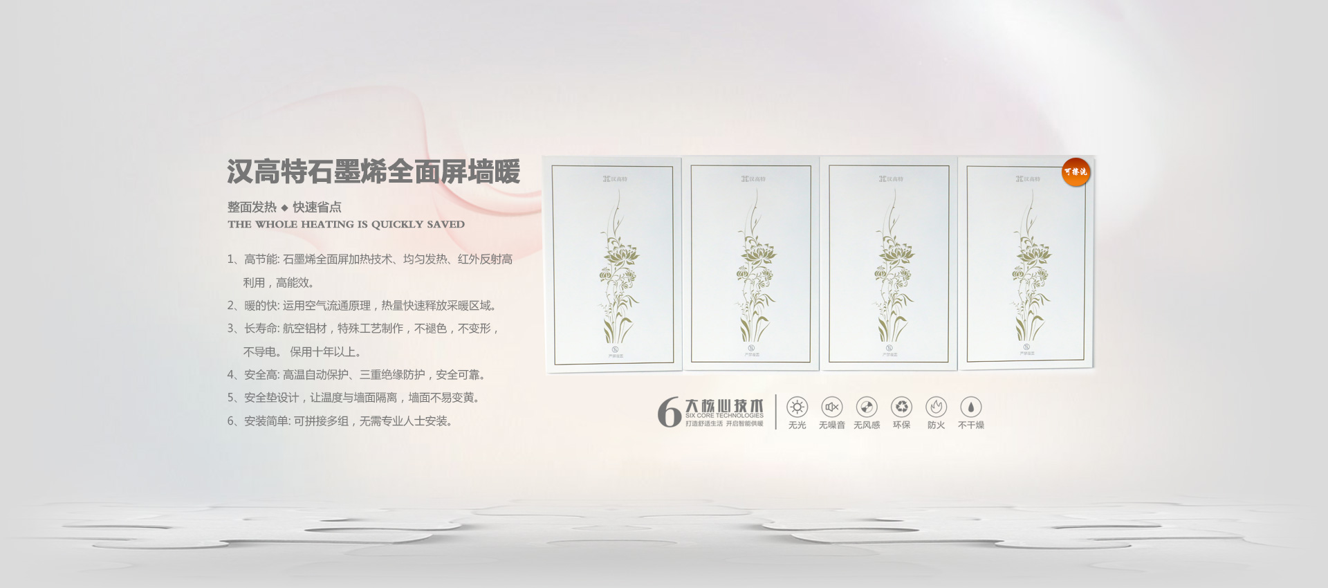 漢高特自主研發(fā)的新型石墨烯電地暖、石墨烯電采暖、電熱膜電地暖、碳纖維電暖、碳晶墻暖畫(huà)、電地暖廠家加盟、電熱膜工廠,采用新設(shè)計(jì)、新材料在行業(yè)內(nèi)首創(chuàng)了耐強(qiáng)酸、耐強(qiáng)堿、防火阻燃、防水防潮等特點(diǎn)。產(chǎn)品暢銷(xiāo)江蘇、四川、甘肅、山西、河北、河南、內(nèi)蒙、新疆等地。